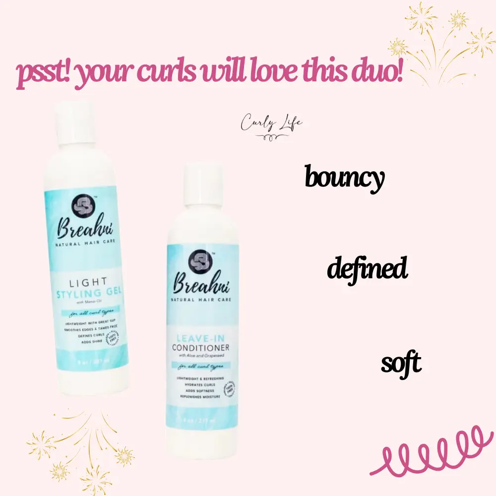 This lightweight, refreshing Breahni Leave-In Conditioner leaves curls with bounce, radiance and full of shine.