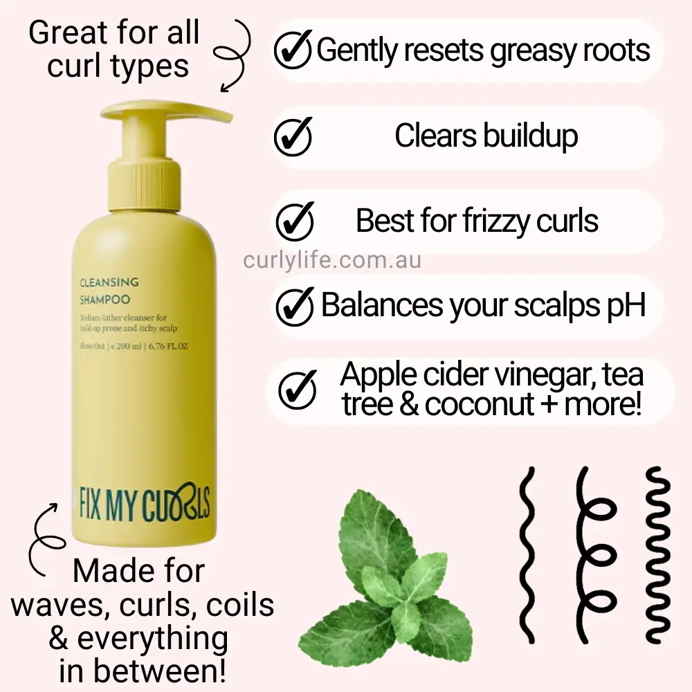 Greasy roots? Flaky scalp? Not on our watch. Hit reset on build-up and bring your scalp back to life with Fix My Curls Cleansing Shampoo, a mild, sulphate-free cleanser that gets the job done without messing with your scalp’s natural oils.
