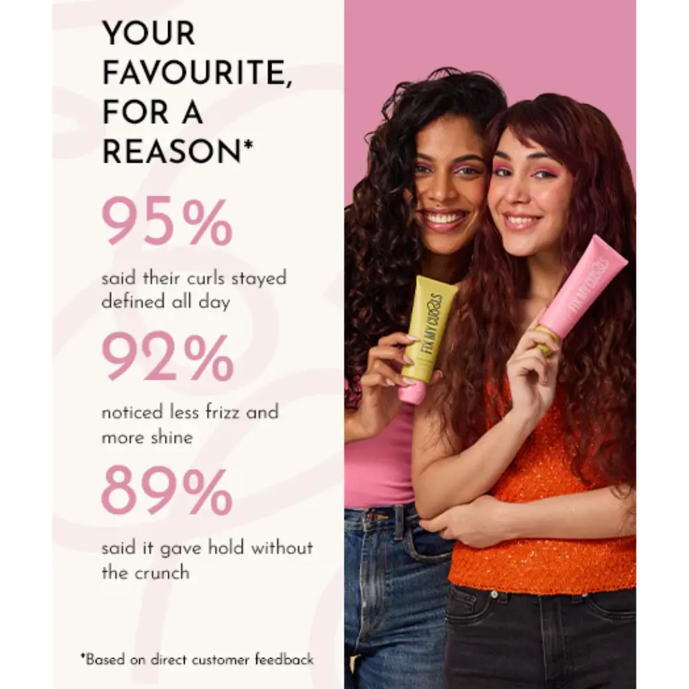 Say hello to your curl’s BFF. Fix My Curls Defining Hair Gel is the final styling step your routine’s been waiting for. It locks in all that juicy moisture from our leave-in cream, forms a light cast to keep definition on point, and holds your curls together without the crunch.