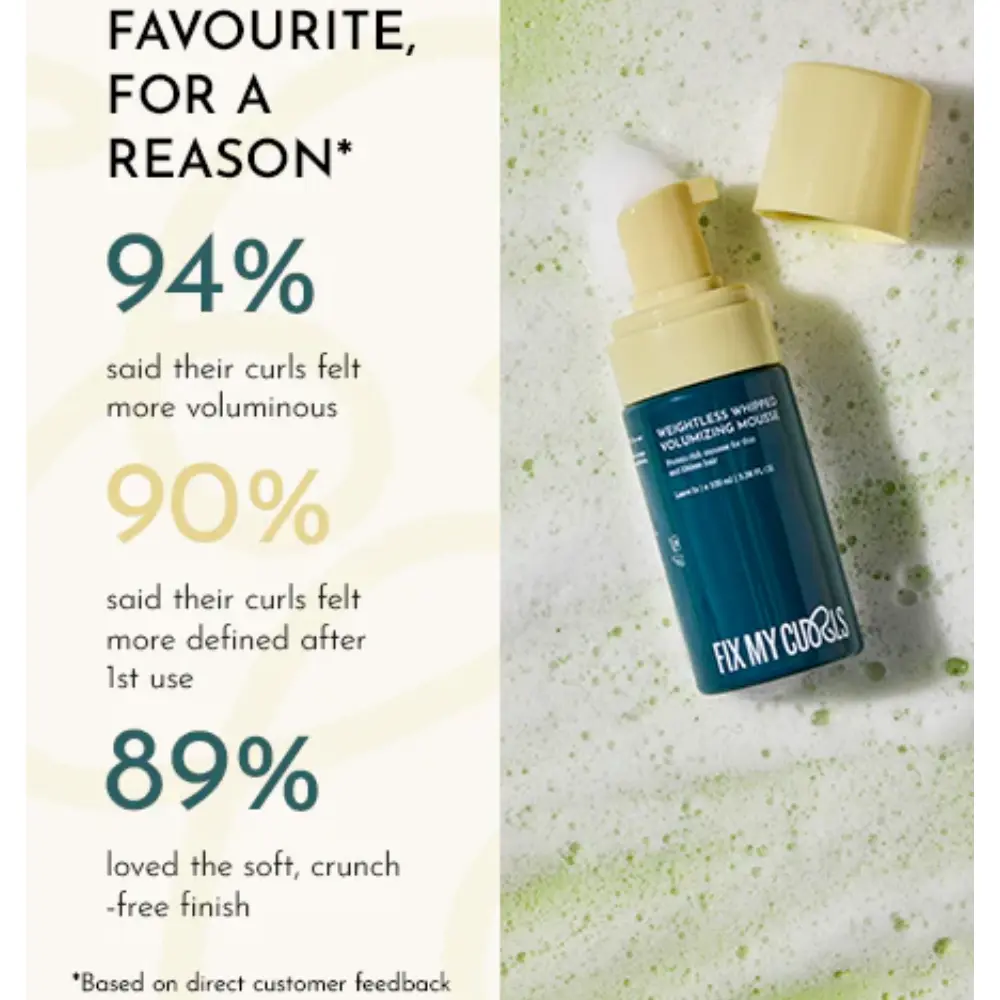 Your shortcut to bouncy, voluminous curls! This hair mousse adds texture without the heaviness, so you get full, fluffy curls that stay light all day. Powered by rice protein, matcha green tea, and apple amino acids, this mousse prevents breakage, boosts shine, and enhances definition. Fix My Curls Weightless Whip Volumizing Mousse is perfect for those on-the-go days, this quick, one-step product is all you need for an effortless washday or fast refresh.