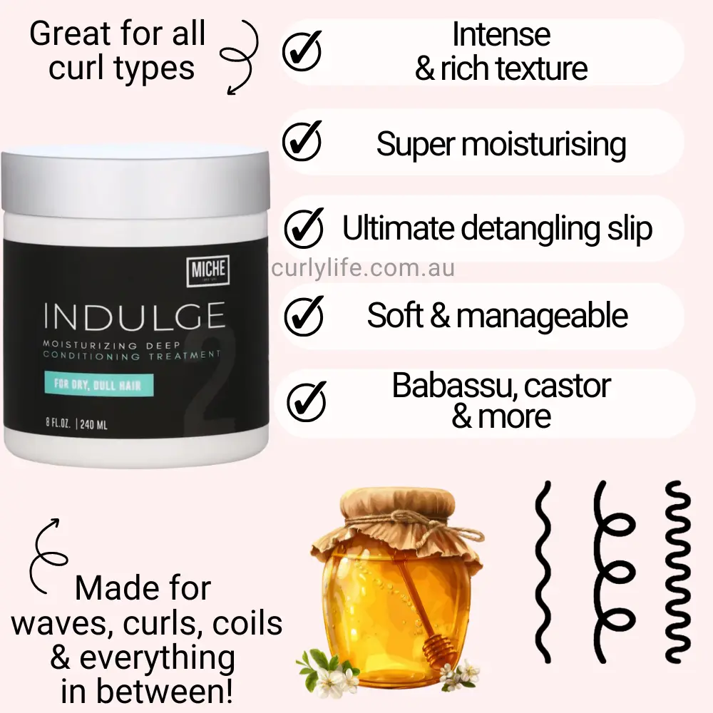 Miche Indulge Moisturizing Deep Conditioning Treatment is the best moisturizing deep conditioner that will leave your DRY, DEHYDRATED, AND DULL hair SOFT and MANAGEABLE!