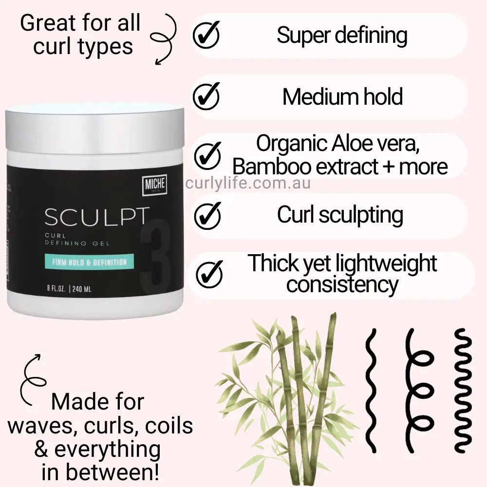 Sculpt is an alcohol-free, curl-defining & curl sculpting gel that provides curls & coils with hold, definition and shine. Sculpt provides a medium hold for long-lasting definition and hold. This gel has a thick yet lightweight consistency that does wonders for all curl types. Made with Organic Aloe vera & Bamboo extract, which strengthens & adds a beautiful shine to hair. Great for all curls & pH Balanced for optimal hair health!
