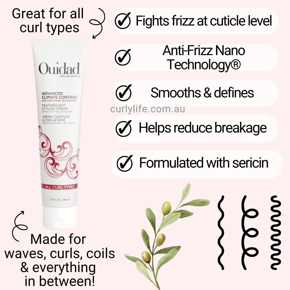 Ouidad Advanced Climate Control Featherlight Styling Cream is your go-to for soft, bouncy, and totally frizz-free curls!