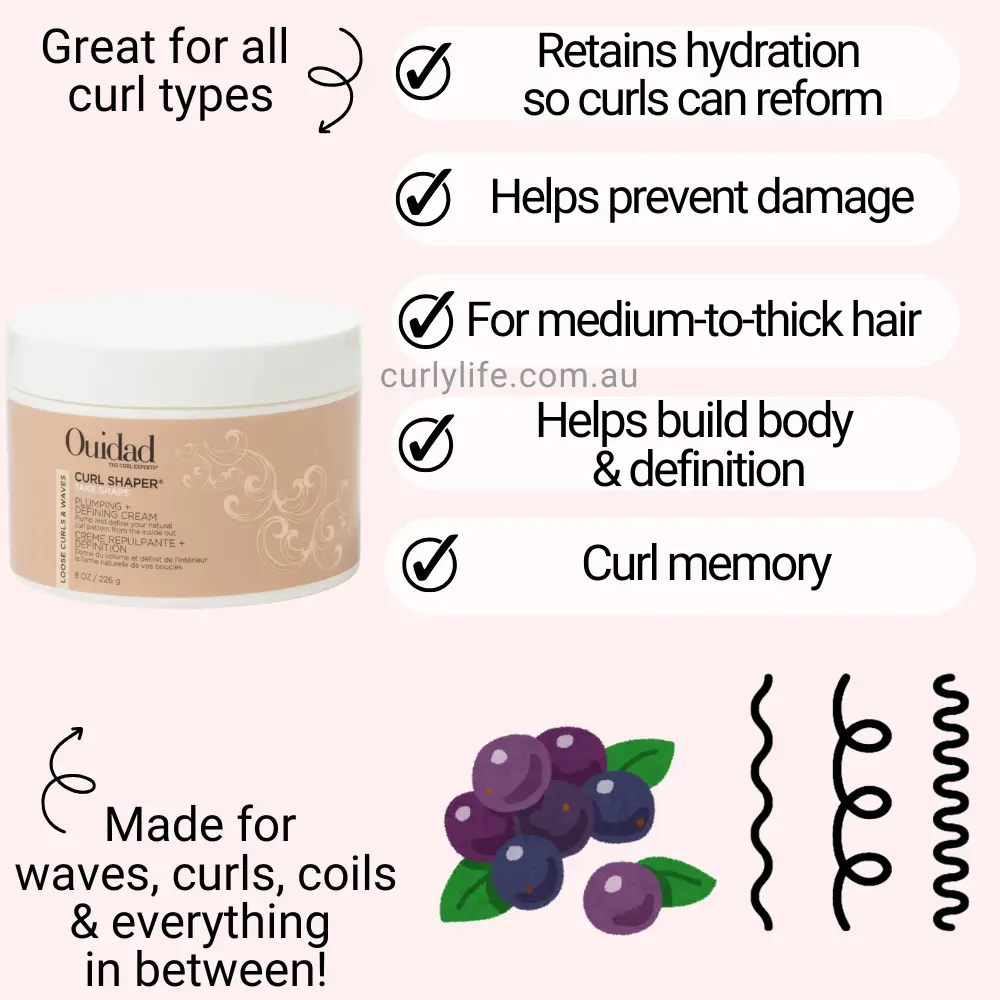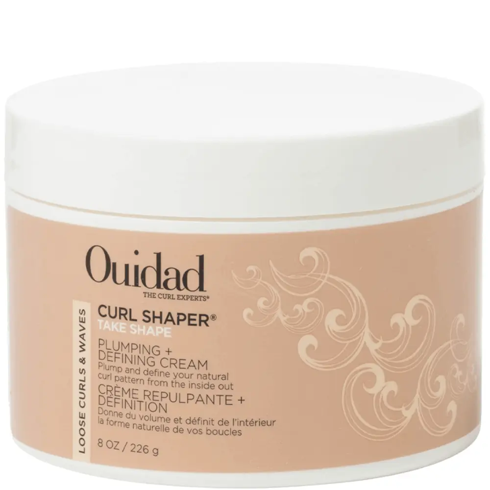 Best curling hair cream designed for medium-to-thick hair textures that crave more moisture, Ouidad Curl Shaper Take Shape Plumping + Defining Cream establishes curl memory for soft, natural-looking movement.