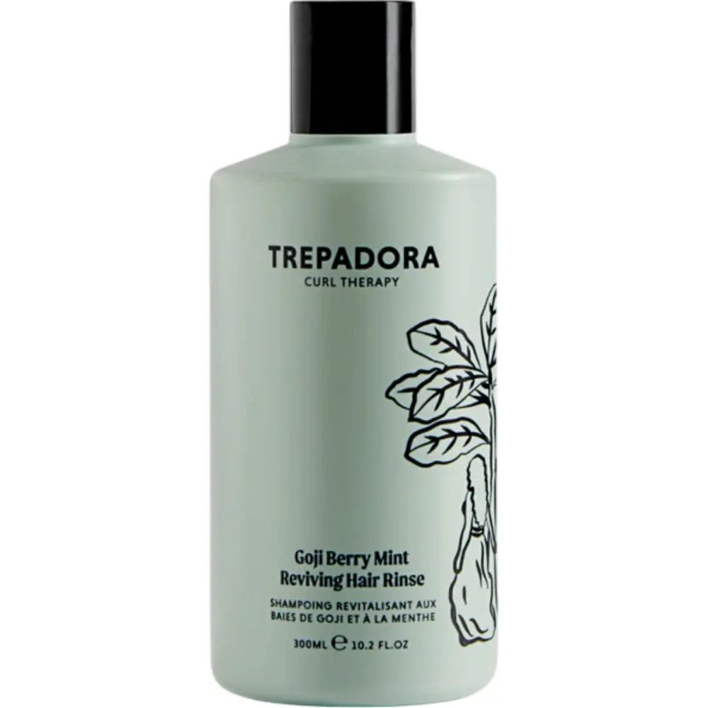 Perfect for restoring balance and shine, this sulfate-free formula leaves your curls refreshed and ready to thrive in any climate. Colour-safe. Use TREPADORA Goji Berry Mint Reviving Hair Rinse daily, weekly or occasionally.